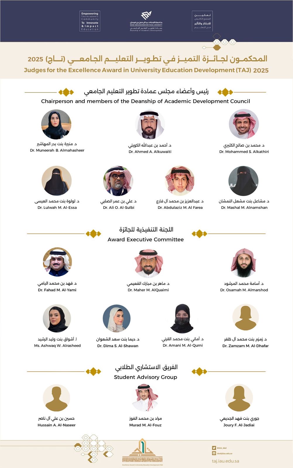 المحكمون لجائزة التميز فى تطوير التعليم الجامعى (تاج) 2024-2025